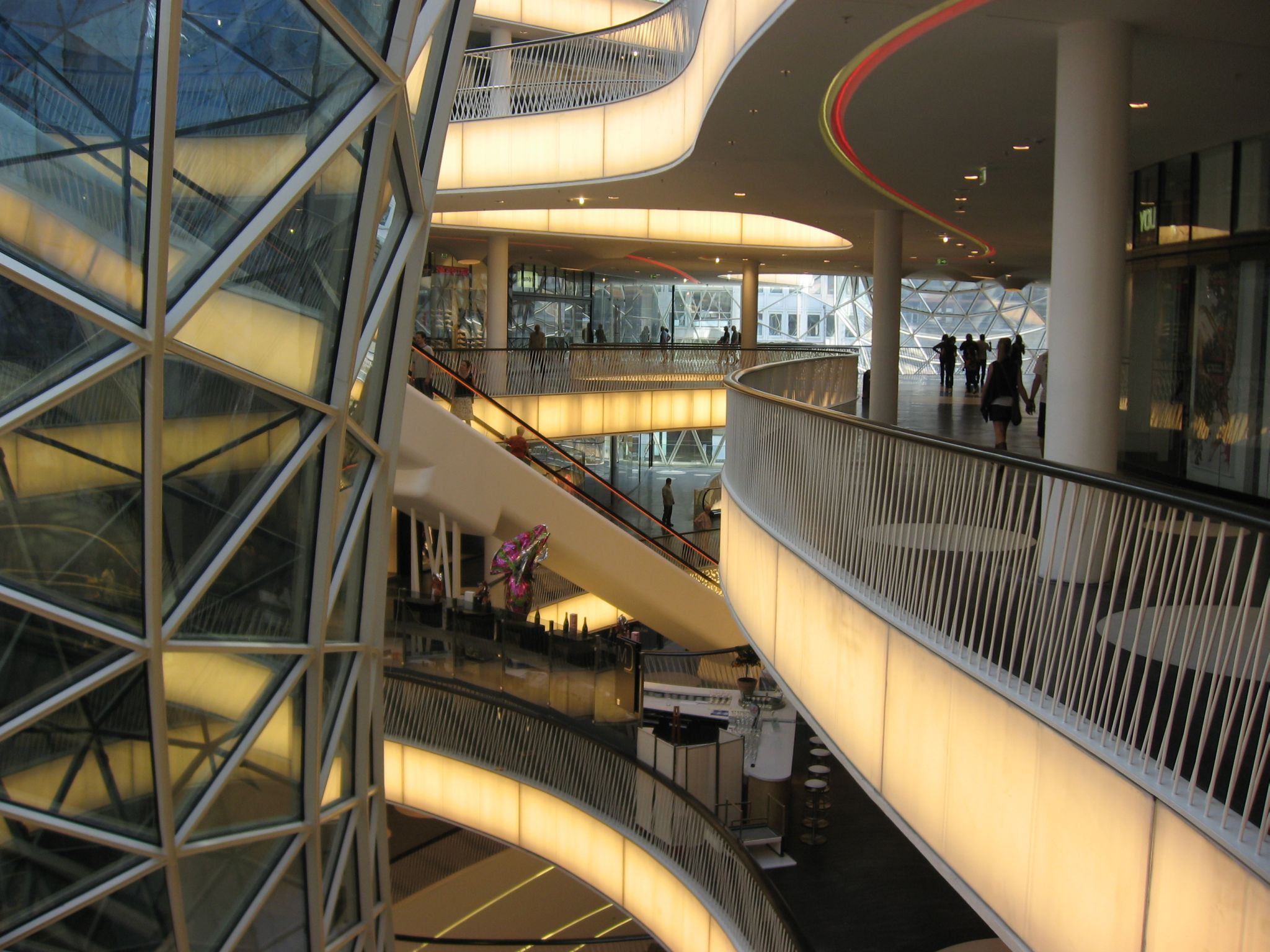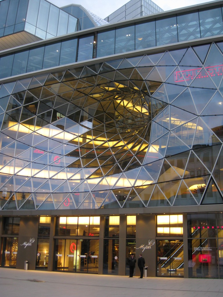 مجتمع تجاری مای زیل (Myzeil) در سال 2009 در کشور آلمان در شهر فرانکفورت افتتاح گردید. نمای شیشه ای و سه بعدی این ساختمان یک فضای دینامیک و تاثیر گزار را همراه با یک محیط منحصر به فرد برای کاربری این ساختمان به وجود می آورد. زیر بنای 77000 متری این ساختمان شامل فروشگاه ها، محیط های تفریحی، محوطه کودکان ، رستوران ، باشگاه بدنسازی و پارکینگ می باشد. این معماری زیبا تنها در روز بازگشایی 120000 نفر بازدید کننده را به سمت خود جذب کرد و رکورد 2 میلیون بازدیدکننده را در دو هفته ی ابتدایی بر جای گذاشت.